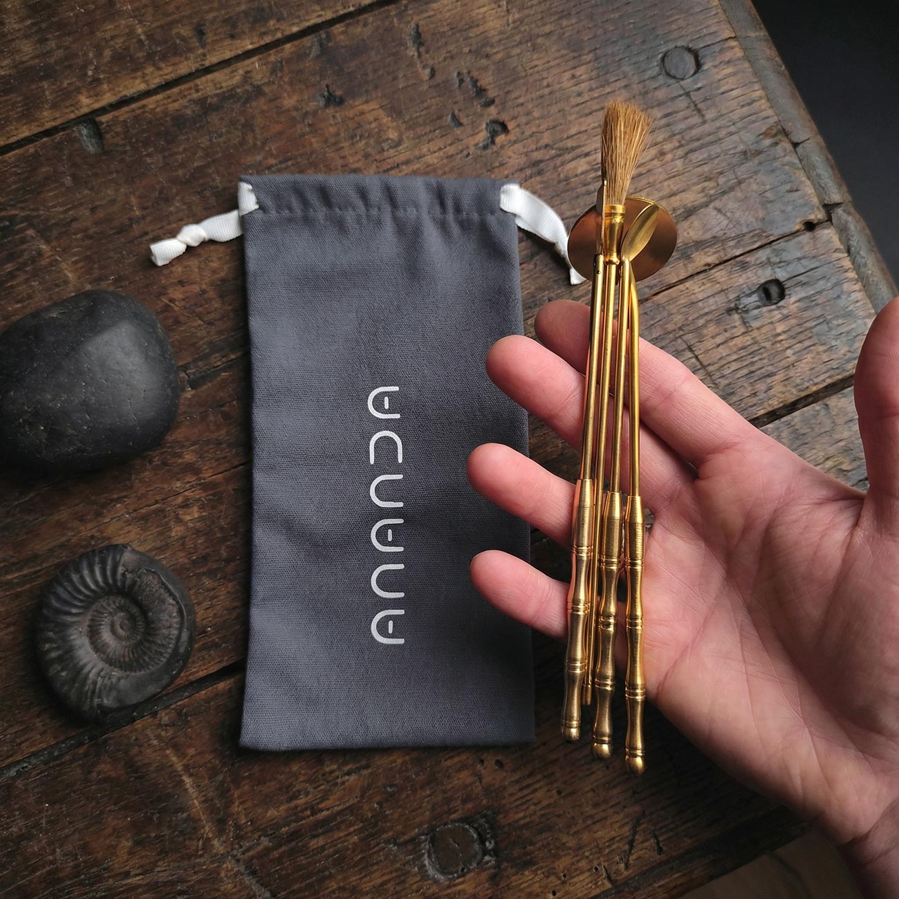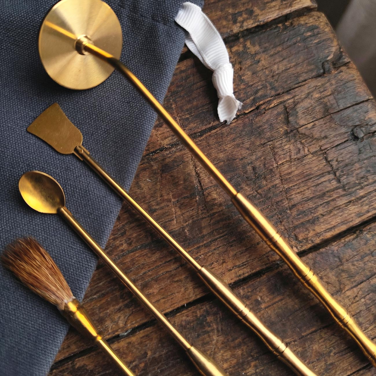 Набор включает четыре базовых инструмента, без которых невозможно провести полноценную церемонию формирования ароматической печати: