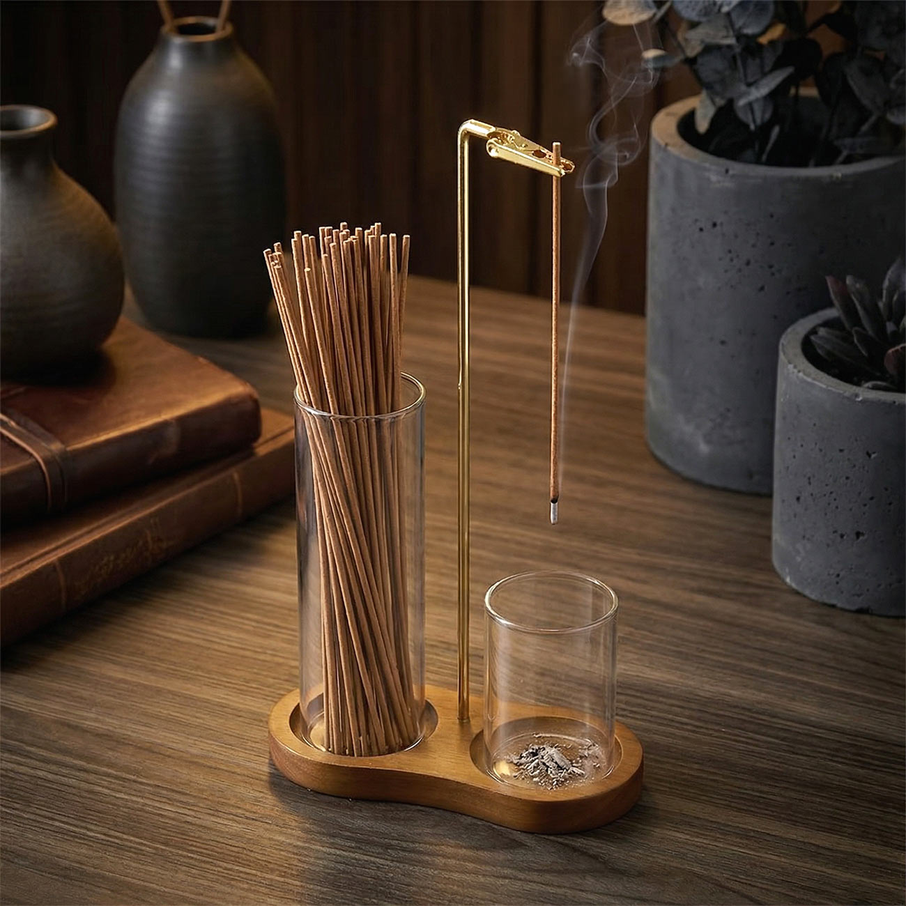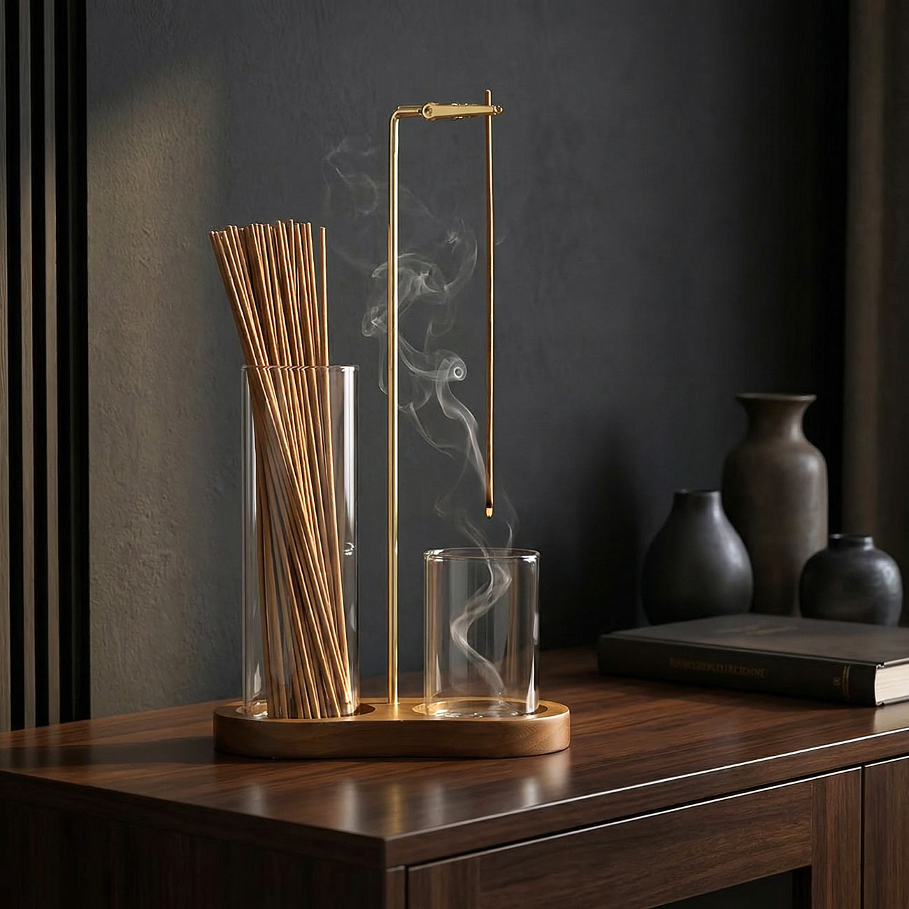 Вертикальные подставки для аромапалочек — это особый формат аксессуара, в котором сочетаются эстетика, чистота линий и удобство ежедневного использования. Благодаря вертикальному размещению благовония выглядят особенно изящно: тонкая палочка будто зависает в воздухе, а дым мягко поднимается вверх, создавая спокойную, медитативную атмосферу. Такая подставка не только выполняет практическую функцию, но и становится стильным элементом интерьера, подчеркивающим вкус, любовь к деталям и умение находить красоту в простых вещах.